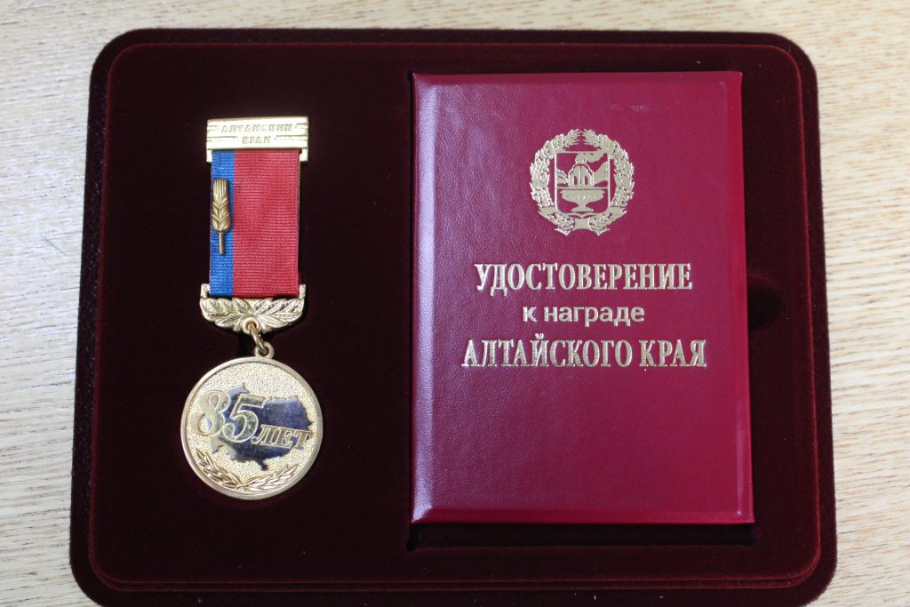 Указом Губернатора Алтайского края №102 от 06.07.2022 за заслуги и достижения в области социальной защиты и пенсионного обеспечения, в связи с празднованием 85-летия Алтайского края юбилейной медалью Алтайского края награждена Попеляева Марина Викторовна , ведущий специалист-эксперт клиентской службы (на правах отдела) в г. Новоалтайске и Первомайском районе Государственного учреждения - Отделения Пенсионного фонда Российской Федерации по Алтайскому краю.