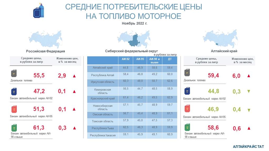 О потребительских ценах на бензин и дизельное топливо в Алтайском крае в ноябре 2022 года