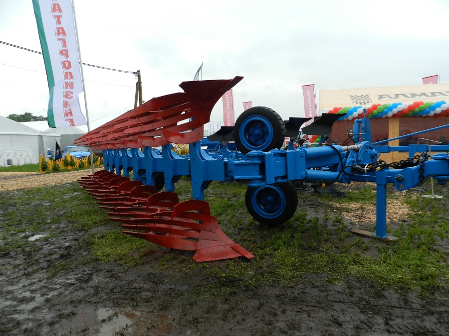 На открытой площадке «Алмаза» особый интерес вызвал культиватор секционный универсальный АЛТАЙ КСУ-8 для ранней предпосевной обработки и формирования посевного ложа и плуг полунавесной оборотный PERESVET ППО-8-35 в комплекте с перьевыми и полувинтовыми корпусами. Полувинтовой отвал хорошо оборачивает пласт почвы и частично его крошит.