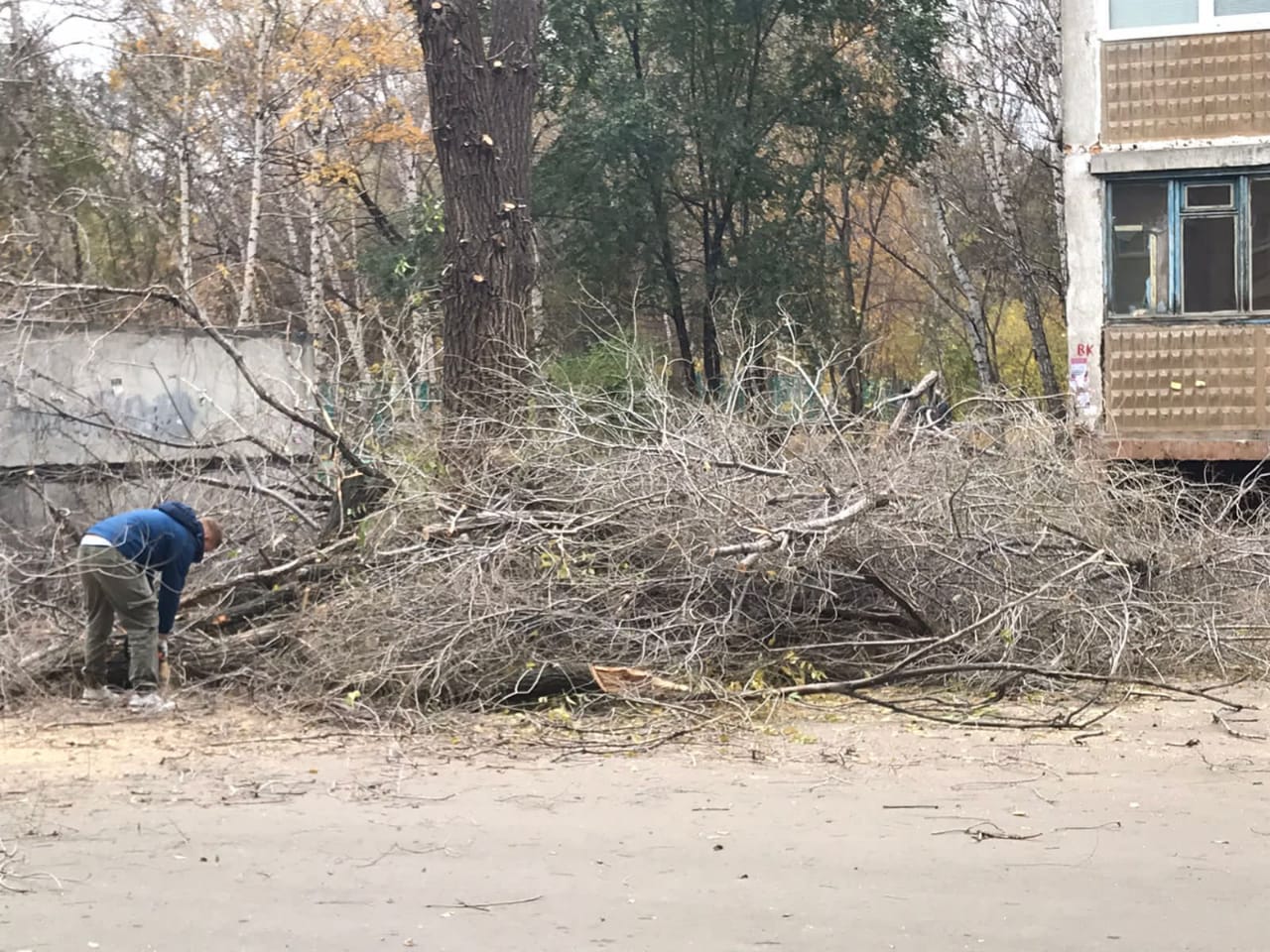Депутатом были привлечены специалисты, которые спилили сломанные и высохшие ветки деревьев.