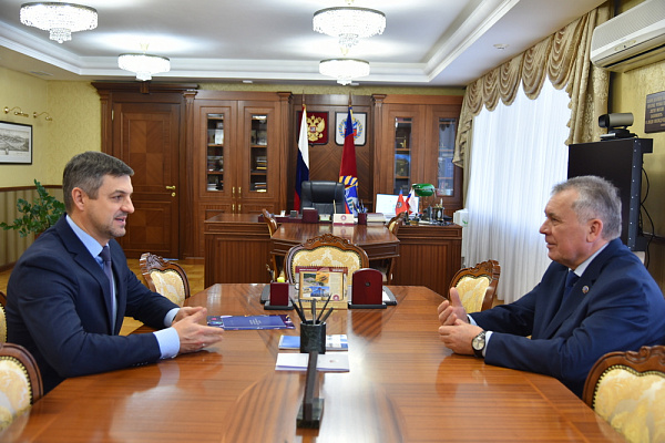 Сегодня, 22 октября, председатель Алтайского краевого Законодательного Собрания Александр Романенко провел рабочую встречу с главой регионального Совета отцов Сергеем Струченко.