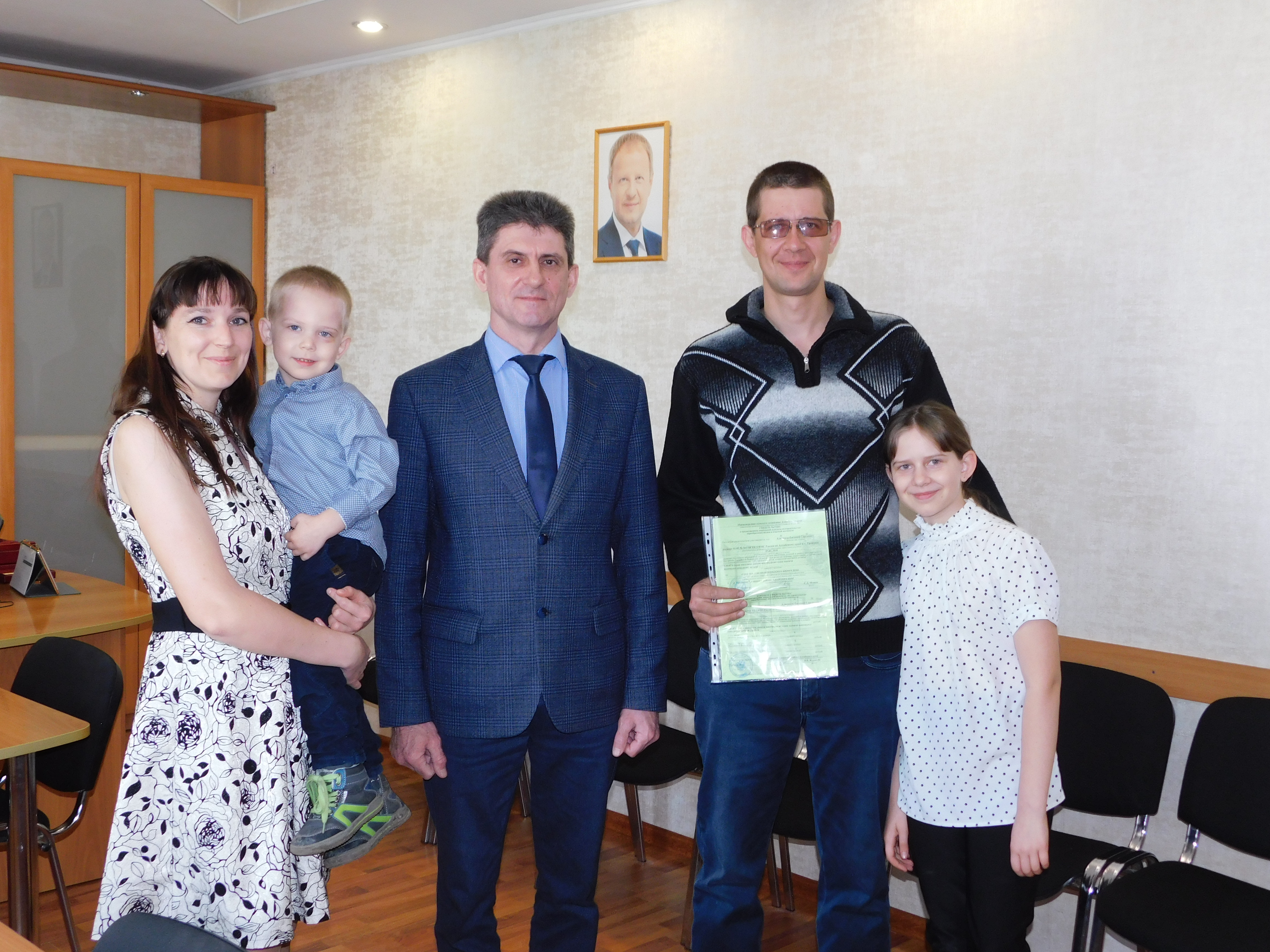 8 апреля глава района В.В. Журавлев вручил свидетельство о предоставлении социальной выплаты на строительство (приобретение) жилья в сельской местности семье Алилековых из райцентра.
