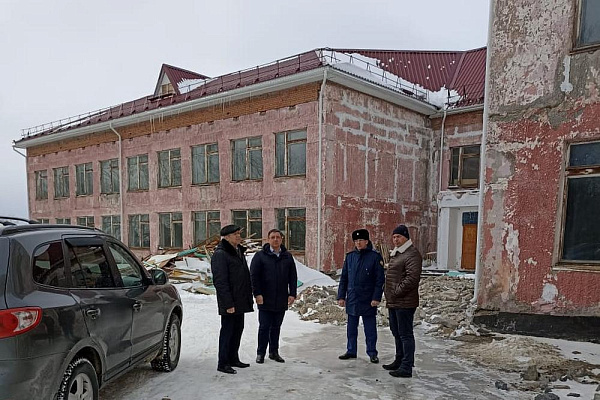 Председатель комитета АКЗС по здравоохранению Владимир Лещенко и председатель комитета АКЗС по строительству, ЖКХ, транспорту и связи Игорь Панарин проверили, как идет капитальный ремонт одной из школ Зонального района.