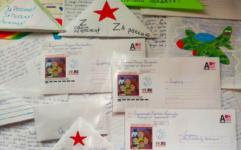 Письма школьников, адресованные военнослужащим, участвующим в военной операции на территории Украины, ребята принесли в музей истории Ленинского района, где они были сформированы в одну посылку.