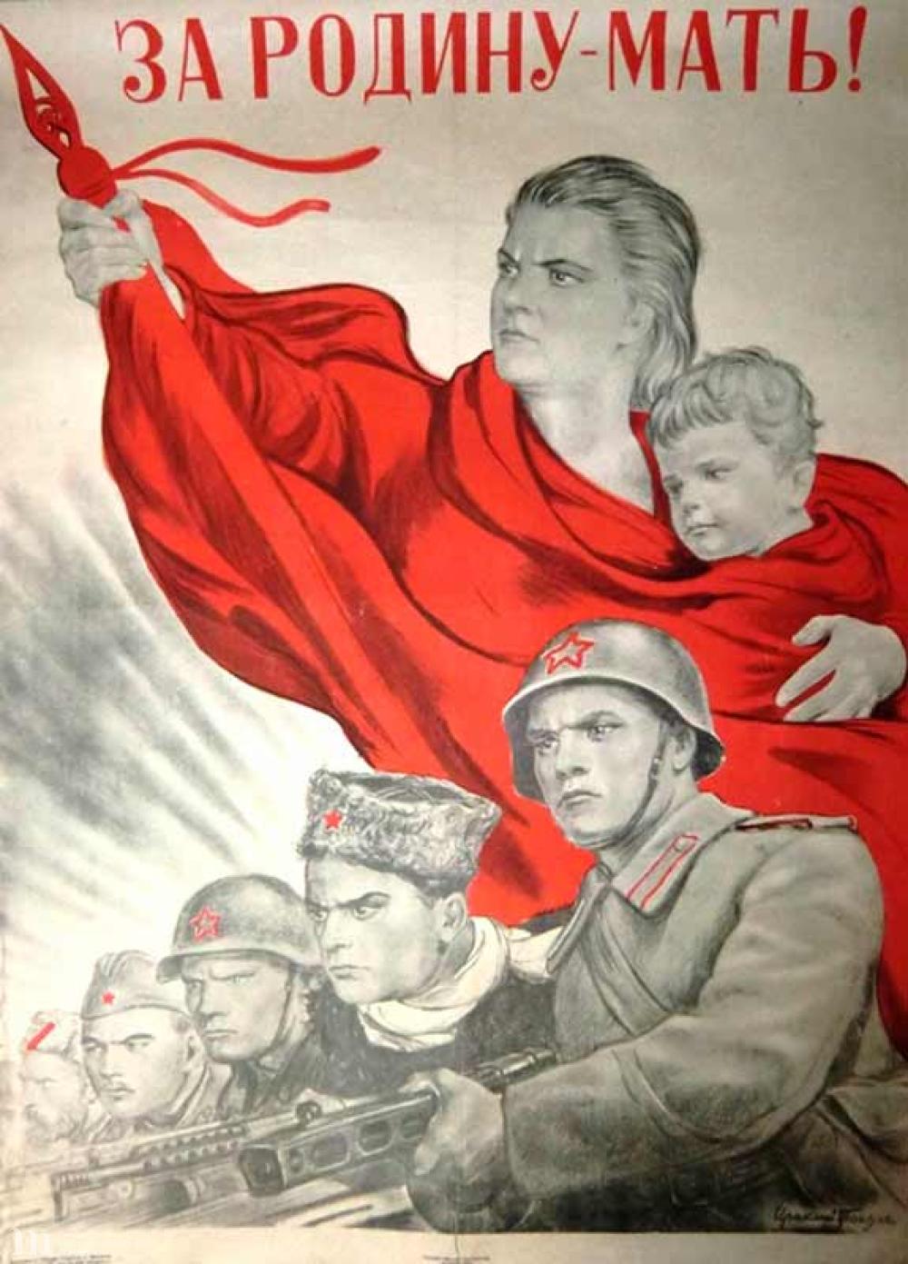 Автор плаката «Родина-мать зовет» – Ираклий Моисеевич Тоидзе. Позировала для образа Родины-матери жена художника, Тамара Теодоровна. Плакат висел на сборных пунктах и вокзалах, на проходных заводов и в воинских эшелонах, на кухнях, в домах и на заборах. Для солдат и офицеров он стал портретом Матери, в котором каждый видел черты дорогого ему лица…