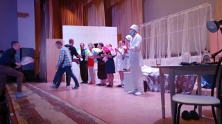 В рамках проекта "Большие гастроли" актеры рубцовского драматического театра побывали в воинской части "Иркутск 45". Добирались до цели долго, ехали по просёлочной дороге на автобусе, за окном мелькали березы в золотом убранстве и величественные сосны. И вот долгожданный объект - КПП воинской части... проверка документов... досмотр автобуса, и дальше путь до военного городка. Встретил актеров сам командир части, что было приятно и почетно. Играть предстояло в Доме офицеров. Помогали разгружать реквизиты и декорации военнослужащие. Общими усилиями установили декорации детского спектакля и сыграли для детей военнослужащих сказку "Волшебные ягоды". Юные зрители с интересом следили за происходящем на сцене. Ребятам с первых минут полюбился главный герой - солдат Степан. После окончания спектакля дети долго хлопали, а потом становились в очередь, чтобы сфотографироваться с актерами: бравым и находчивым солдатом, служанкой Лизой, Королевой. Принцем и принцессой. После одного представления последовала смена декораций, и вот уже актеры готовятся к взрослому спектаклю "Палата бизнес класса". На вечернем спектакле зал был полон: пришли офицеры с женами и военнослужащие. После спектакля зрители отметили, что действие смотрится на одном дыхании. В знак признательности актерам РДТ были преподнесены цветы.