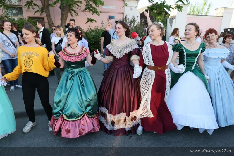 Традиционно церемония открытия акции в столице Алтайского края прошла на улице Мало-Тобольской, откуда в разных направлениях отправились экскурсии по музеям города.