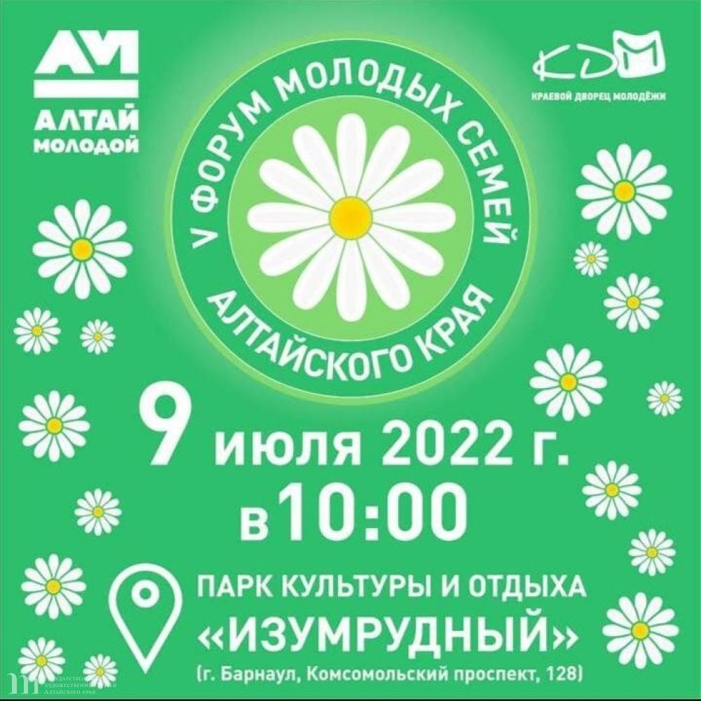 9 июля 2022 года Государственный художественный музей Алтайского края примет участие в V краевом форуме молодых семей , который состоится в парке культуры и отдыха «Изумрудный».