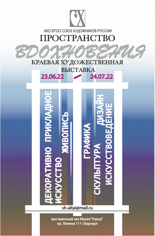 23 июня в выставочном зале музея «Город» в краевой столице состоится открытие краевой художественной выставки «Пространство вдохновения», подготовленной Алтайской организацией Союза художников России.