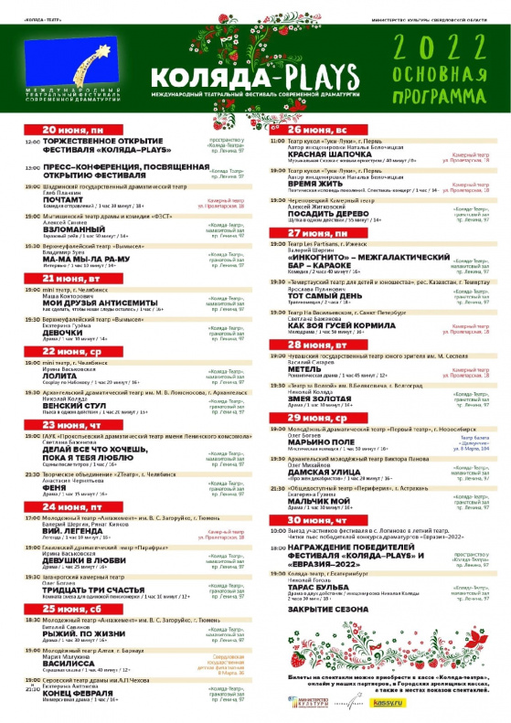 Организаторы фестиваля «Коляда-Plays» опубликовали программу. МТА будет выступать в основной программе, показ состоится 25 июня на сцене Свердловской государственной детской филармонии.