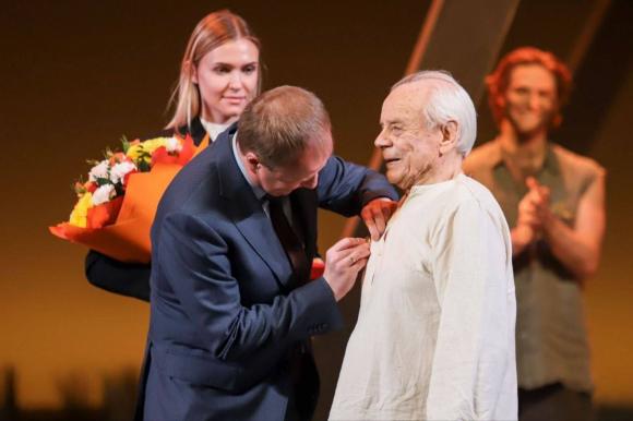 Торжественная церемония прошла после показа спектакля «Король Лир», где 85-летний актёр играет главную роль. Награду вручил губернатор Алтайского края Виктор Томенко.