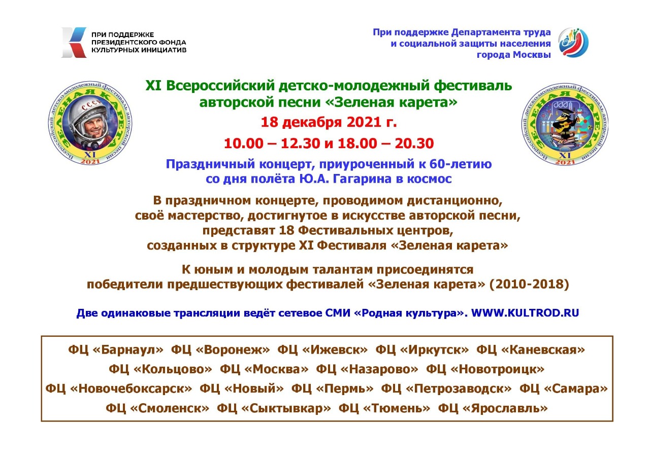 Онлайн трансляция концерта, приуроченного к 60-летию со дня полёта Юрия Гагарина в космос, состоится 18 декабря