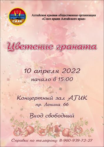 Союз армян Алтайского края приглашает на концерт «Цветение граната»
