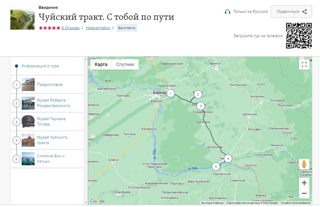 Маршрут сложился из 15 точек. Это музеи Роберта Рождественского, Германа Титова, Василия Шукшина, музей Чуйского тракта, место образования реки Оби, старый Чуйский тракт, река Катунь, этнопарк «Легенда», гора Пикет, центр кумандинской культуры, гигантская рябь течения у села Платово, гора Бабырган, скала Чертов Палец, озеро Ая и «Бирюзовая Катунь».
