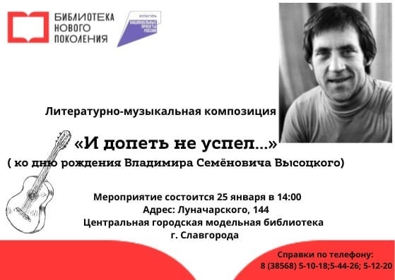 В Славгороде состоится мероприятие ко дню рождения В.С. Высоцкого