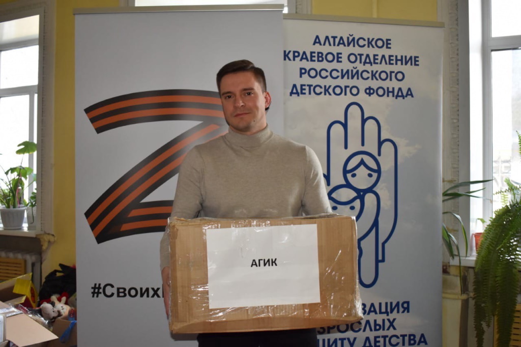 Студенты Алтайского государственного института культуры не остались в стороне и собрали гуманитарную помощь детям из ЛНР и ДНР. 28 апреля 2022 года Председатель Профкома студентов Егор Игоревич Мотаев отвез, собранную гуманитарную помощь студентами АГИК, а так же смог пообщаться с представителями Алтайского краевого отделения Российского детского фонда.