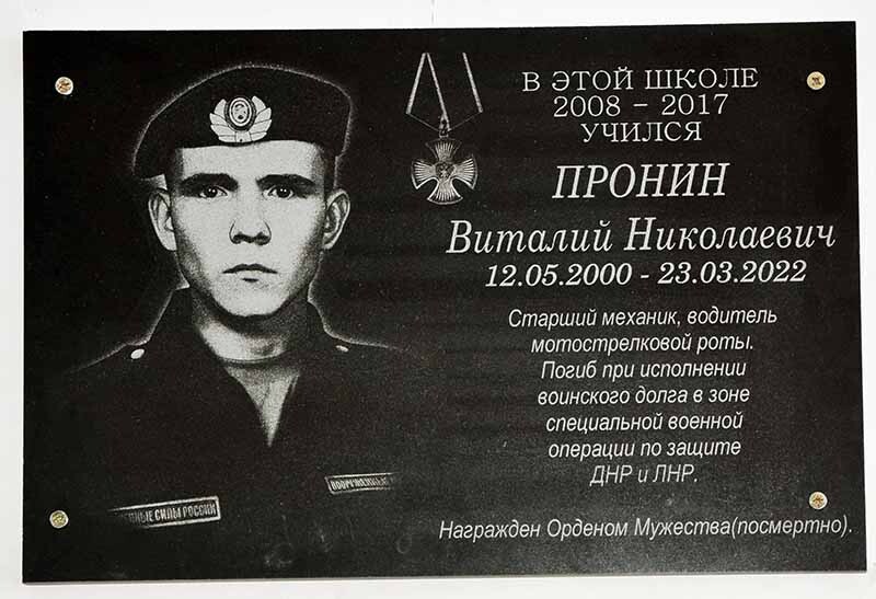Виталий Пронин - старший механик, водитель мотострелковой роты, посмертно награждён Орденом Мужества.