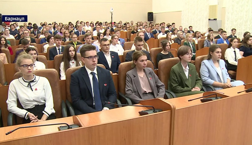С приветственным словом к ним обратился заместитель губернатора Алтайского края Игорь Степаненко. В формате онлайн за происходящим в большом зале краевого правительства наблюдали ещё около 500 выпускников из разных городов и районов края.