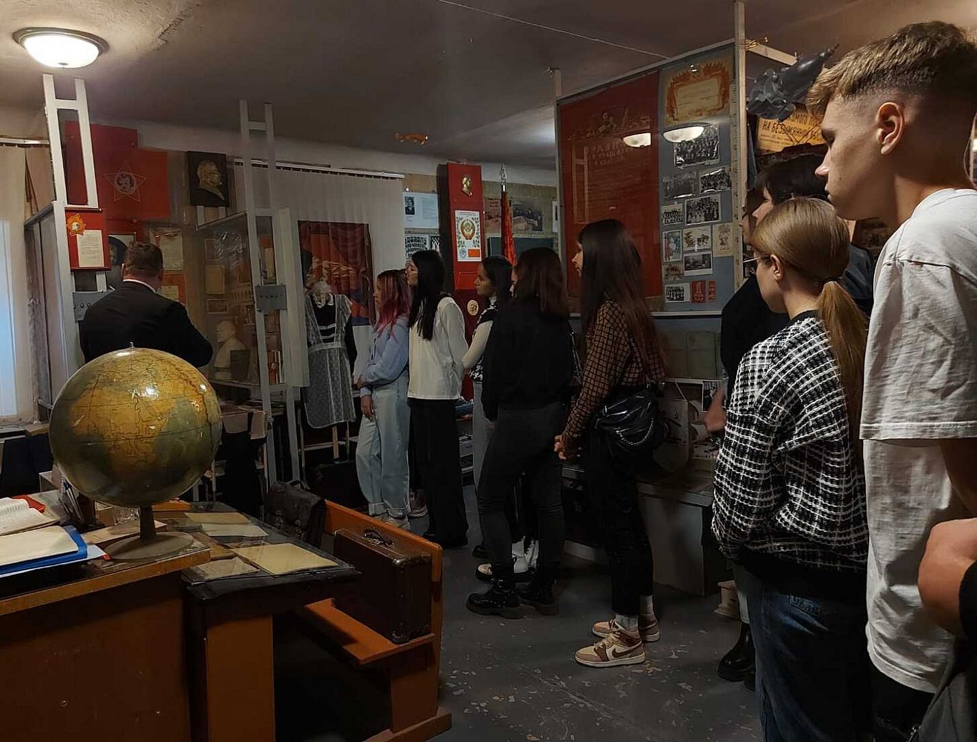 Один из залов посвящен истории школы. Здесь ребята увидели парты, за которыми сидели их бабушки и дедушки, школьную форму родителей и другие атрибуты учащихся СССР. В следующем зале студенты узнали историю нашего края.