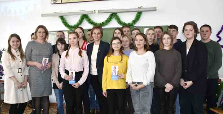 Далее депутат свой визит продолжила в МБОУ «Советская сош», где провела ученикам десятых и одиннадцатых классов классный час под названием «Олимпийский час». Ознакомила ребят со своей биографией и спортивными достижениями. А также вручила Е. А. Михайлевич, учителю начальных классов МБОУ «Советская сош», заслуженный знак Всероссийского физкультурно-спортивного комплекса «Готов к труду и обороне». Встреча прошла в теплой дружеской обстановке.