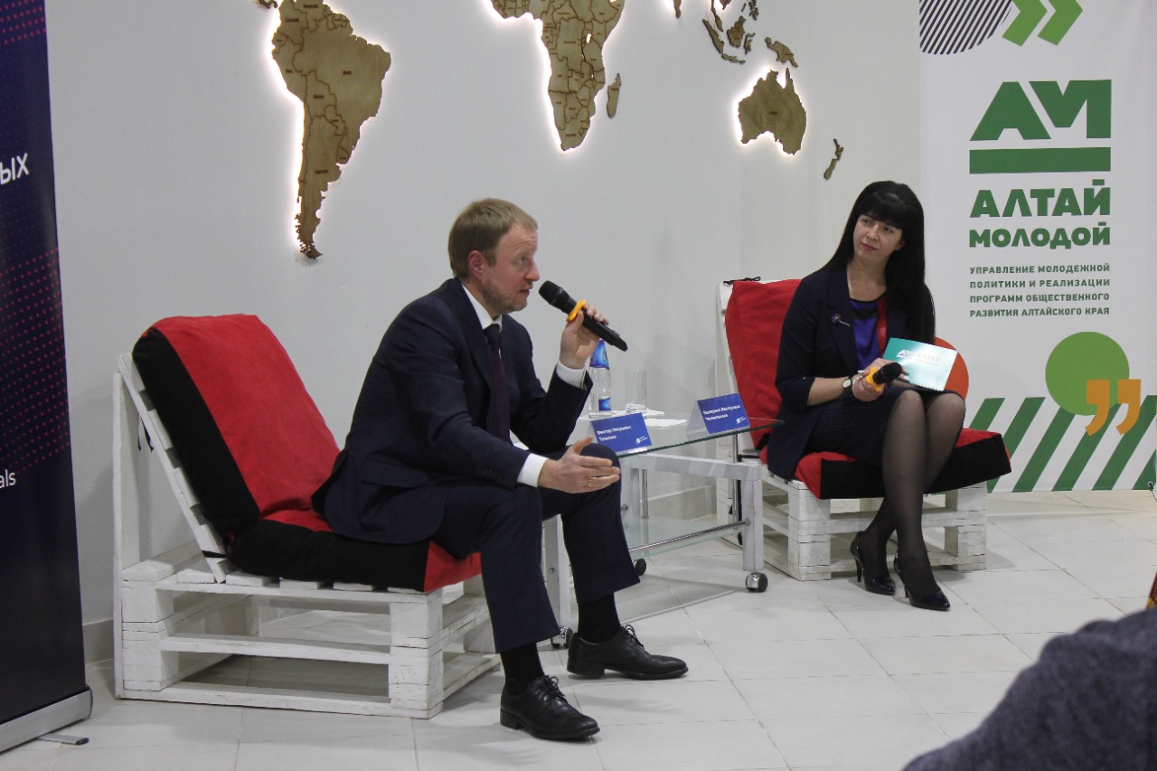 Общение Губернатора с активной молодёжью региона прошло в формате «Диалог на равных». Модератором встречи выступила начальник управления молодёжной политики и реализации программ общественного развития Алтайского края Екатерина Четошникова.