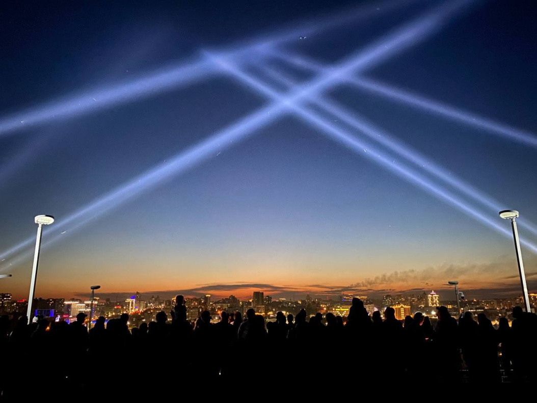 Ночное небо над Нагорным парком озарилось лучами 16 прожекторов в знак памяти обо всех, кто отдал свои жизни в борьбе за Победу. Именно 24 июня 1945 года на Красной площади прошел первый парад Победы, и небо также осветили прожекторами.