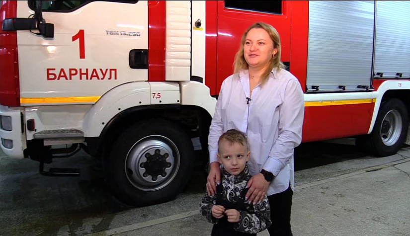 Пожарные Барнаула исполнили мечту 5-летнего мальчика и подарили ему спасательную экипировку