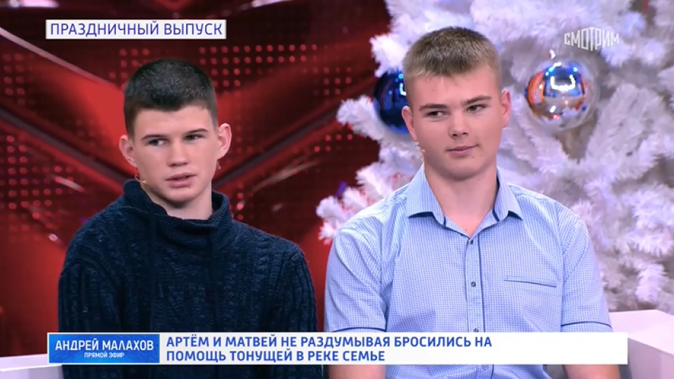 Двое алтайских подростков – 15-летние Матвей Лемп и Артем Титов – стали героями программы "Прямой эфир" с Андреем Малаховым на телеканале "Россия 1".
