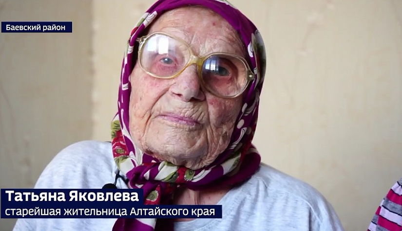 Больше всего долгожителей в Бийске и Барнауле. Из районов лидирует Баевский, там целых три ровесника века. И именно в Баево проживает старейшая жительница края Татьяна Акимовна Яковлева. Накануне ей исполнилось 105 лет.