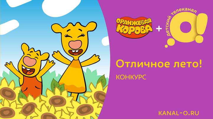 8 июля, в День семьи, любви и верности, телеканал «О!» совместно с «Союзмультфильмом» запускает конкурс рисунков «Отличное лето!». Победитель получит шанс участвовать в создании любимого мультсериала «Оранжевая корова»: его рисунок будет интегрирован в одну из серий мультфильма. Имя автора укажут в титрах, а сам он получит подарок. Итоги конкурса будут подведены 5 сентября, в день рождения «Оранжевой коровы».