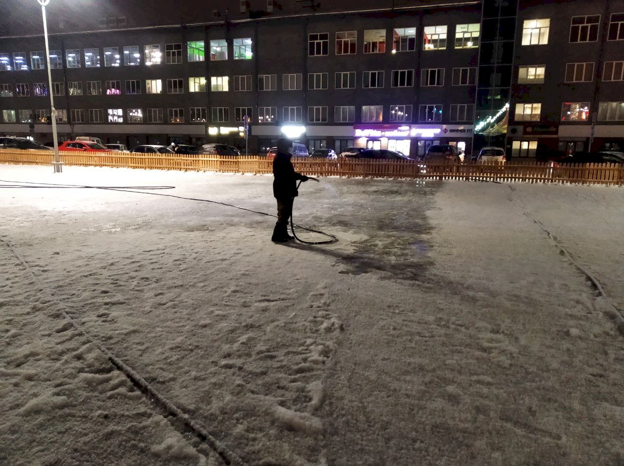 В Барнауле с наступлением холодов на уличной парковке торгового центра Galaxy начали заливать каток, передаёт корреспондент amic.ru.