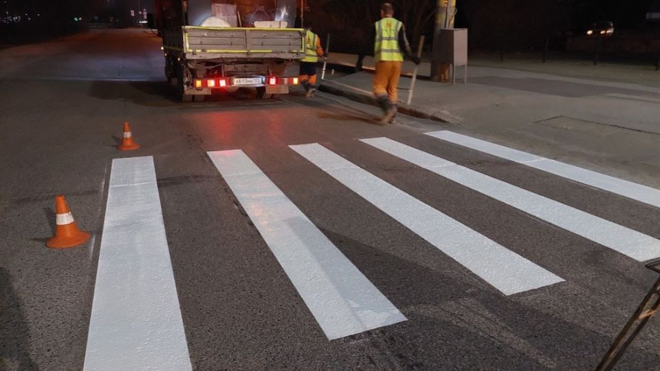 В целях безопасности дорожного движения и обеспечения пропускной способности дорог разметку наносят преимущественно по ночам