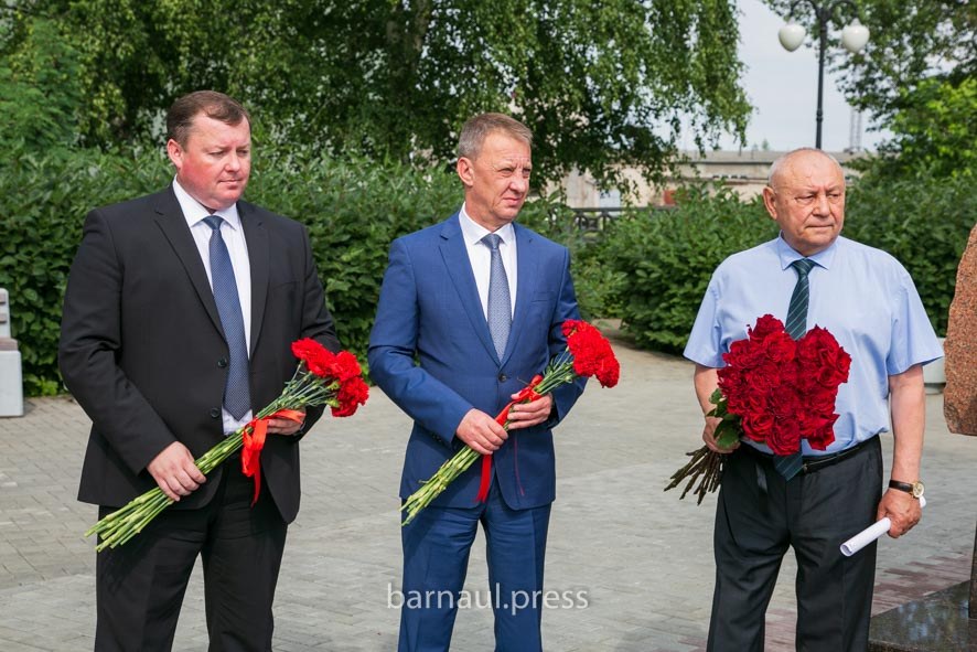 22 июня возложить цветы к памятному знаку, посвященному эвакуированным в годы Великой Отечественной войны в Алтайский край промышленным предприятиям и отдать дань памяти поколениям защитников Отечества и тружеников тыла, создавших промышленный комплекс Алтайского края, пришли руководители и коллективы промышленных предприятий Барнаула. В церемонии возложения цветов также приняли участие глава Барнаула Вячеслав Франк, министр промышленности и энергетики региона Вячеслав Химочка, Председатель Правления Союза промышленников Алтайского края Виктор Герман, исполнительный директор Союза промышленников Алтайского края Виктор Мещеряков, руководитель АРО «Союз машиностроителей России» Максим Коновалов, сообщает официальный сайт региона .