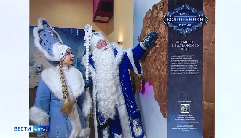 Кстати, у каждого Деда Мороза есть визитка – QR-код со ссылкой на полную информацию о сказочном герое и аудиозапись со сказочной легендой. Про алтайского Деда Мороза сказано, что его резиденция находится в Белокурихе, у него волшебные ресницы и такой же волшебный посох, благодаря которому он управляется со своими сказочными объектами.
