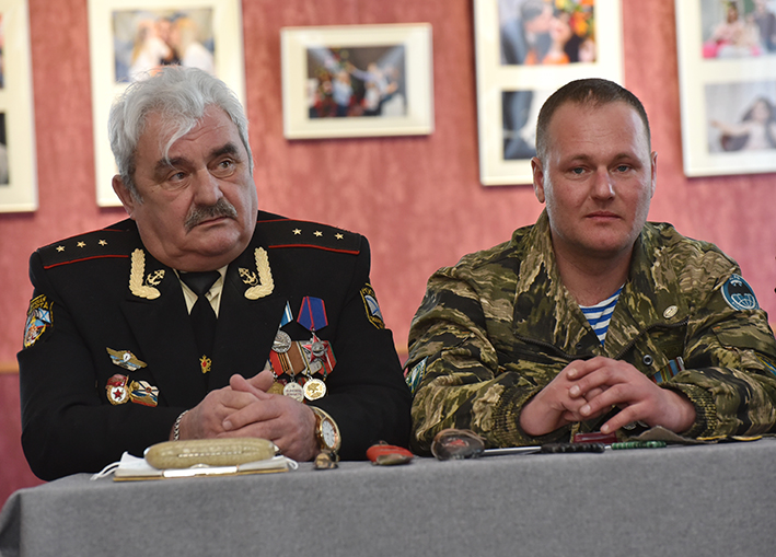 Затем Сергей Вячеславович Завалихин вручил медали и знаки виновникам торжества. Так, нагрудным знаком «За службу России» второй степени был отмечен А. В. Молчанов, также ему вручили медаль «За помощь и содействие ветеранскому движению». Медалью «Ветеран Афганской войны» награждены С. Г. Ведьмеденко и Д. Ю. Лисовенко, медалью «За мужество и отвагу» – В. Н. Антонов.