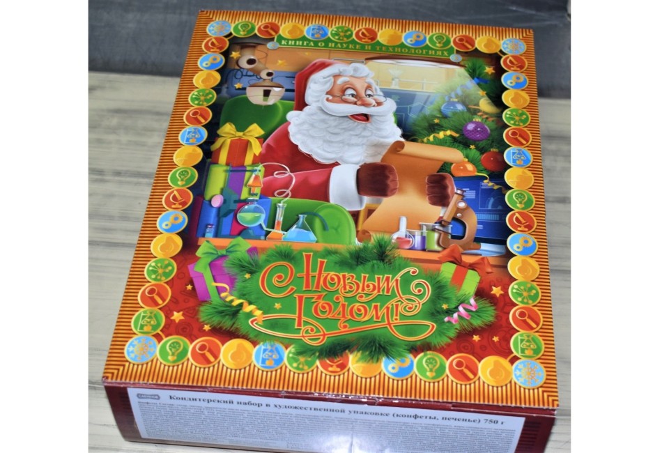 Уходящий год прошёл под темой “Наука и технология”, поэтому и дизайн подарка особенный. Коробка в форме книги с поздравлением губернатора Виктора Томенко включает в себя 750 грамм сладостей (43 штуки). Также на коробке вновь присутствуют QR-коды, с помощью которых можно получить различную интересную и полезную информацию.