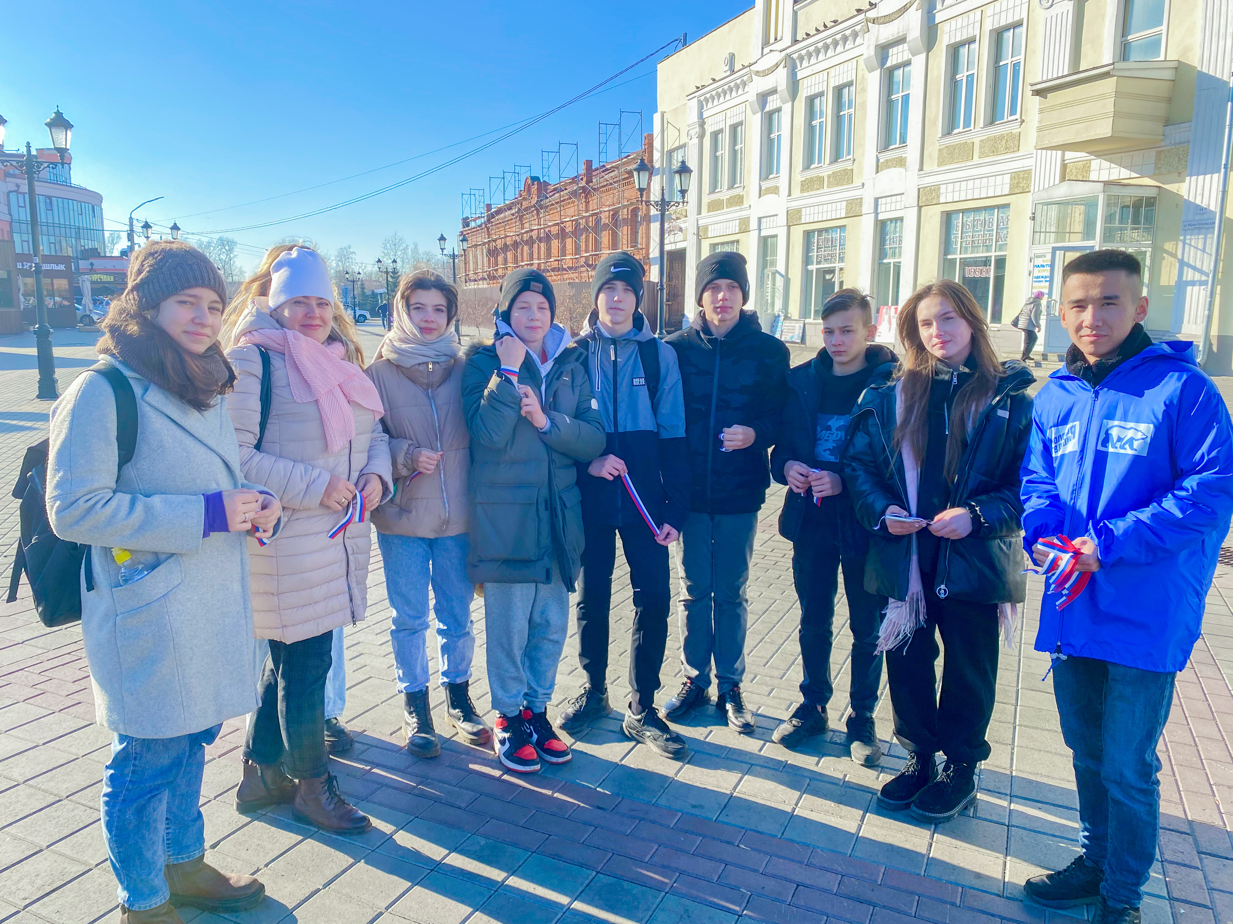 Барнаульские молодогвардейцы организовали акцию по раздаче лент триколора в знак поддержки российской армии, выполняющей специальную военную операцию.