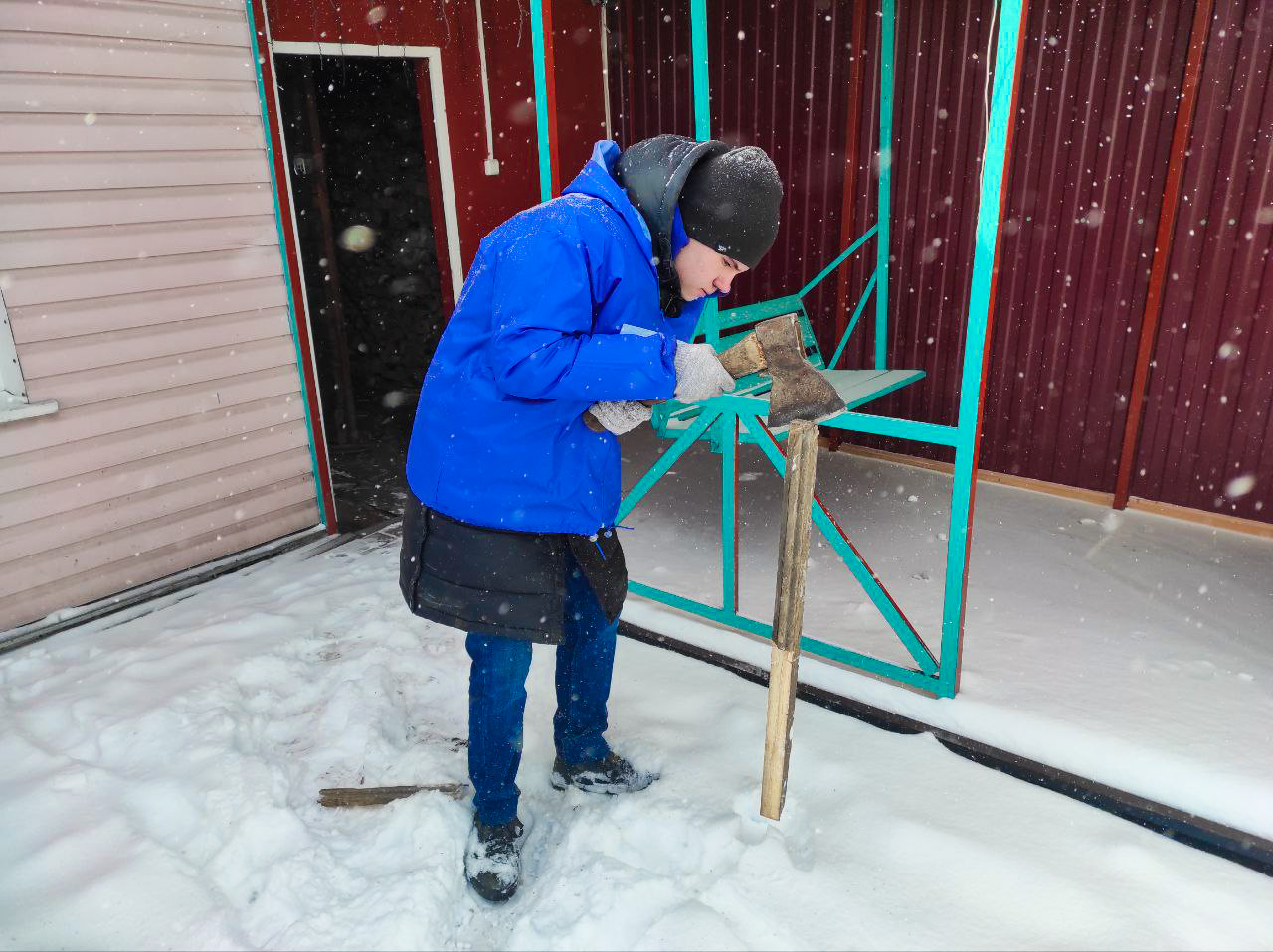Активисты «Молодой Гвардии» города Барнаула Алтайского края помогли семье мобилизованного с колкой дров