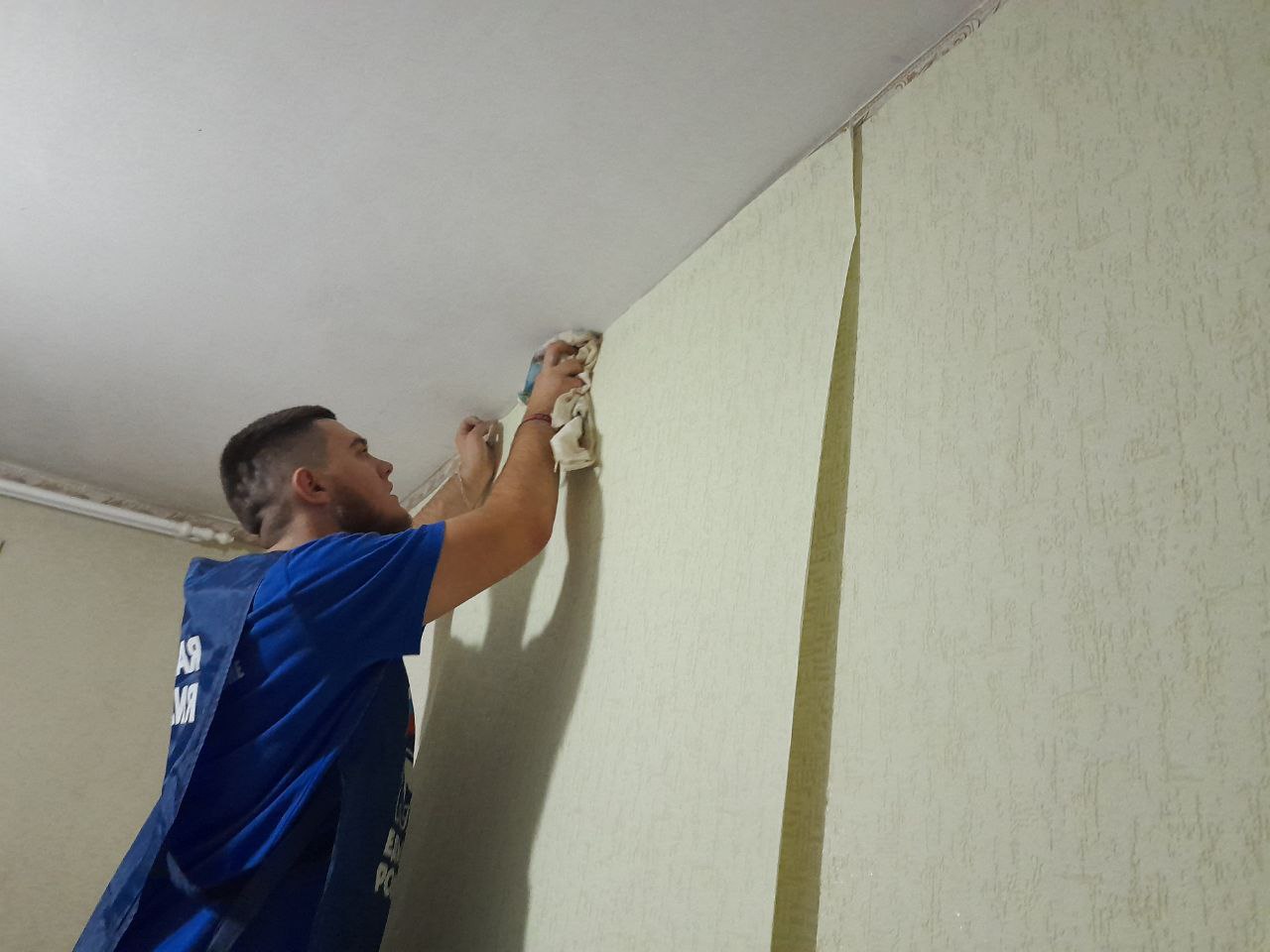 Активисты сразу же откликнулись: поклеили обои и покрасили потолки. Работа на этом не остановилась и будет продолжаться.