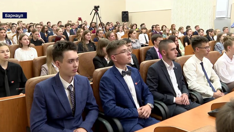С призывом после вузовского обучения остаться в регионе и работать на его развитие, губернатор обратился к отличникам и победителям олимпиад и различных конкурсов. 63 алтайских школьника написали стобалльные работы, а трое выпускников дважды получили высший бал за ЕГЭ, что свидетельствует о высоком развитии уровня образования в крае.