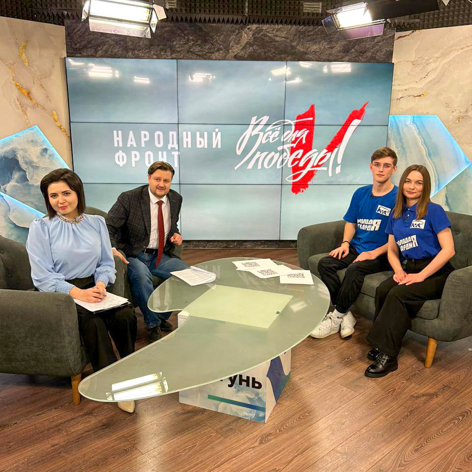 Руководитель Алтайского регионального отделения «Молодой Гвардии» Виктория Анищенко и волонтёр гуманитарной миссии «Молодой Гвардии» на Донбассе Алексей Бойко стали участниками марафона «Всё для Победы!» на телеканале «Катунь-24»,