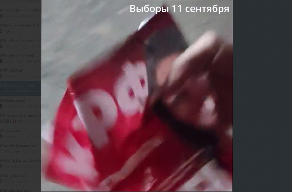 У молодых людей в руках были листовки кандидата в депутаты от "Единой России" Абалымова. В пакете, который обронили убегающие "чистильщики", были обнаружены испорченные плакаты кандидата в депутаты Барнаульской городской Думы от КПРФ Александры Таранец, а также агитационная расклейка "Справедливой России". "Чистильщики" занимались уничтожением агитматериалов прямо во время проведения в Ленинском районе пикета кандидата от КПРФ.