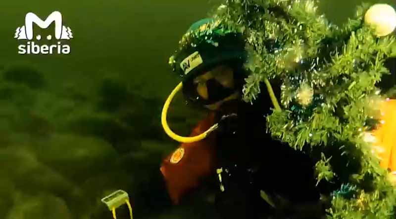 Алтайские драйверы украсили дно Телецкого озера новогодней елкой