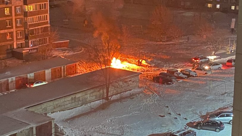 Неподалеку от дома по адресу Советская, 210е в позднее время во дворе загорелся автомобиль.