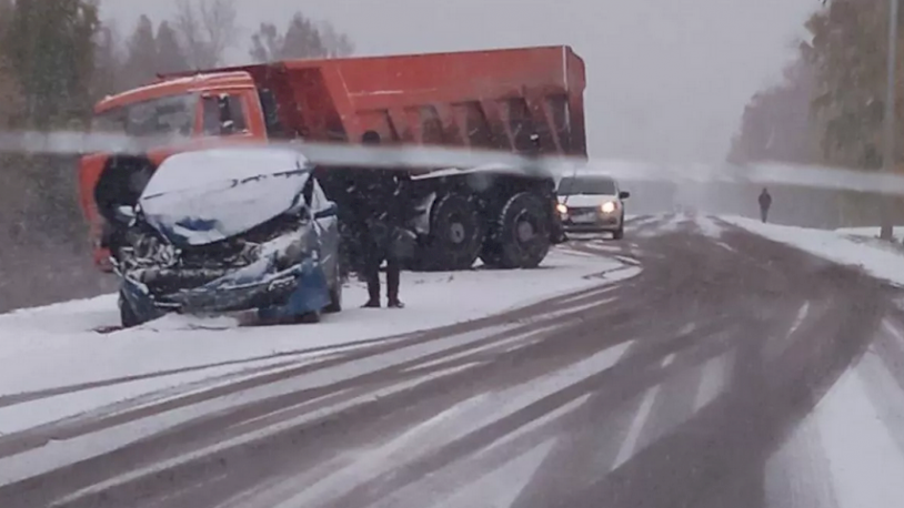 Легковушка столкнулась с грузовиком на заснеженной трассе в Алтайском крае