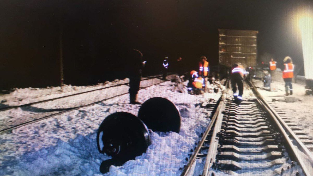 Инцидент произошел в 2.42. Два вагона в составе грузового поезда сошли с рельсов, но не опрокинулись.