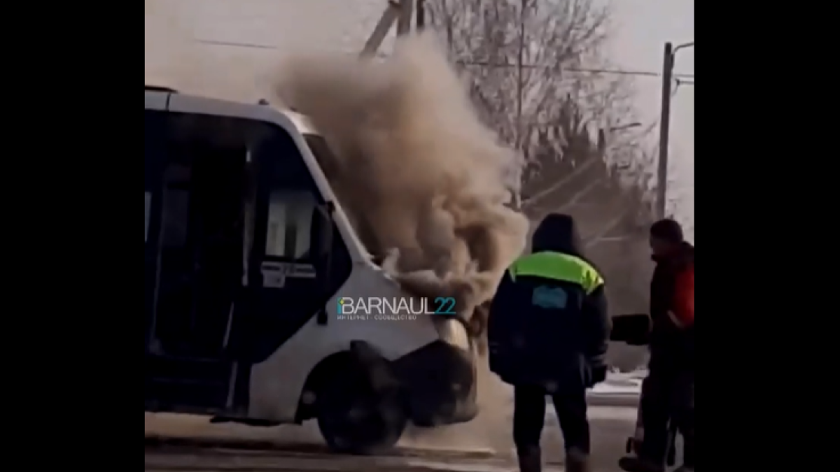 На кадрах видно, что у маршрутки горит кабина автобуса – предположительно, вспыхнул двигатель. Очевидцы помогали тушить его снегом и огнетушителем.