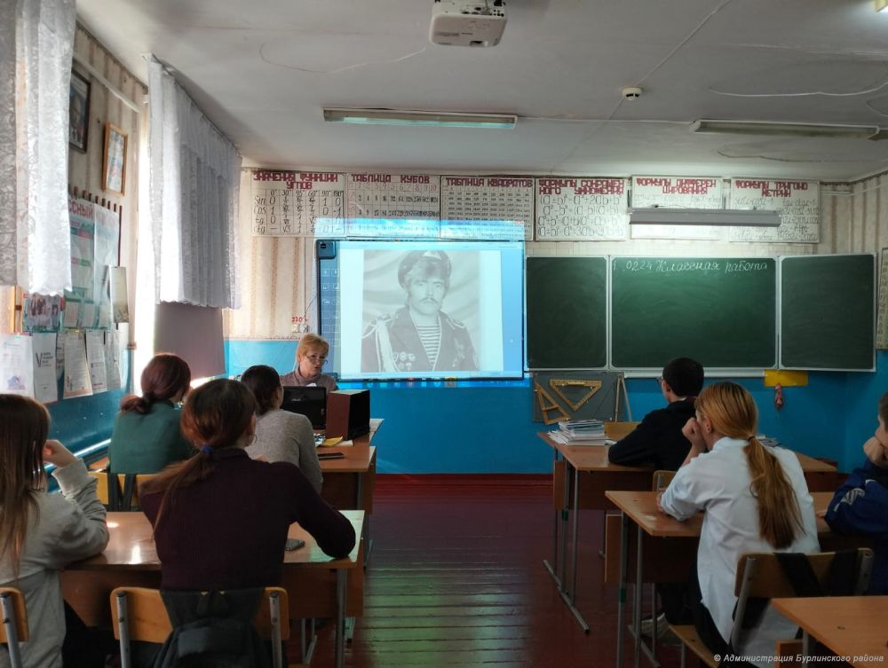 15 февраля художественный руководитель Лесновского ДК Марина Белоусова для обучающихся Лесной школы провела урок мужества «Чтобы не забыть - надо помнить». Участники мероприятия слушали рассказ о мужестве, стойкости и героизме наших солдат, принимавших участие в военных событиях Афганистана, о том, как выполняли свой воинский долг советские солдаты, среди которых были и наши земляки – бурлинцы.
