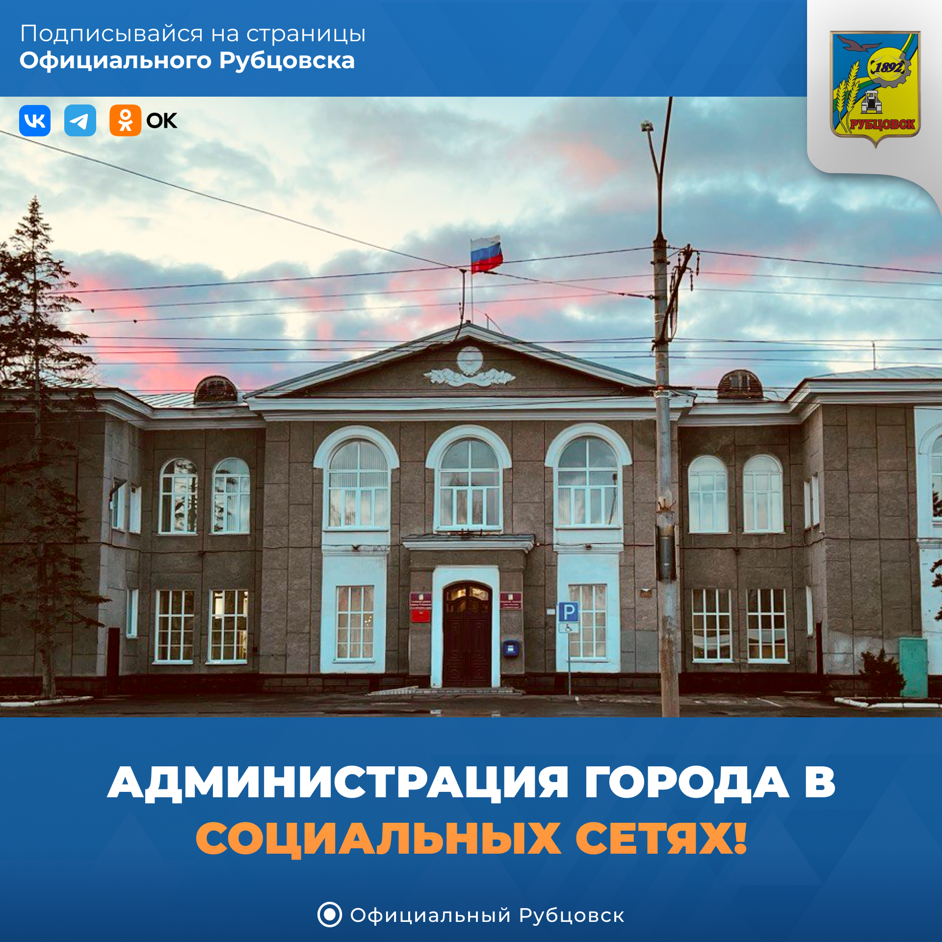 Уважаемые рубцовчане! Самую актуальную, достоверную информацию о жизни нашего города вы можете узнать на официальных страницах Администрации города «Официальный Рубцовск» в социальных сетях:
