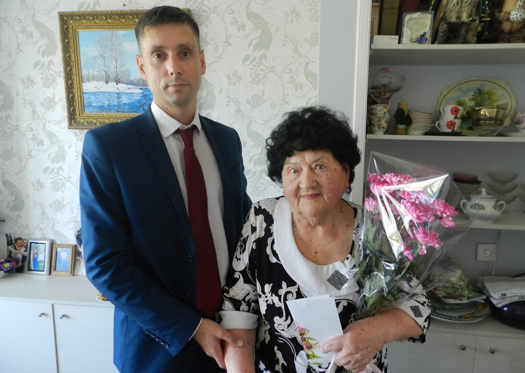 В день юбилея именинницу поздравил глава Научногородокской сельской администрации Юрий Зеленский. По традиции она получила поздравительные телеграммы от Президента России Владимира Путина и губернатора Алтайского края Виктора Томенко, а также подарок от Правительства Алтайского края.